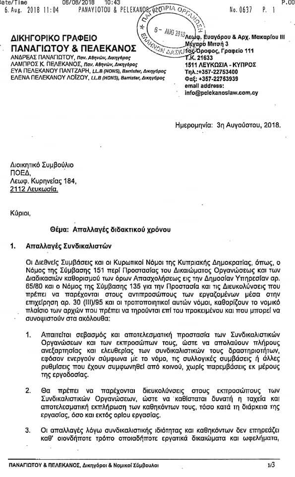 Σύμφωνα με τα όσα ανάφερε στον Reporter, o Γενικός Γραμματέας της οργάνωσης, Χάρης Χαραλάμπους, την νομική γνωμάτευση ζήτησαν να έχουν οι ίδιοι, λίγες μέρες μετά την γνωστοποίηση των τεσσάρων μέτρων που αποφασίστηκαν από το Υπουργικό Συμβούλιο, με σκοπό τον εξορθολογισμό στον τομέα την εκπαίδευσης.