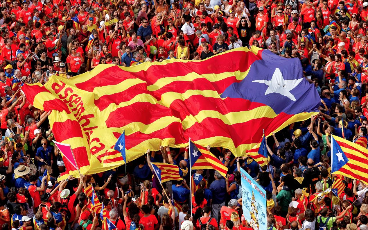 Σχεδόν ένα εκατομμύριο Καταλανοί κατέκλυσαν σήμερα το απόγευμα μια κεντρική αρτηρία της Βαρκελώνης για να γιορτάσουν την "Ντιάδα", την "εθνική γιορτή" της περιφέρειάς τους, δείχνοντας με αυτόν τον τρόπο ότι η ικανότητά κινητοποίησής τους παραμένει ανέπαφη μετά την αποτυχία της προσπάθειας απόσχισής τους από την Ισπανία και με εννέα πολιτικούς ηγέτες τους να παραμένουν ακόμη στη φυλακή.