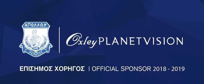Η Εταιρεία Απόλλων Ποδόσφαιρο (Δημόσια) ΛΤΔ ανακοινώνει με ιδιαίτερη περηφάνια στους φίλους και υποστηρικτές της ποδοσφαιρικής μας ομάδας, την έναρξη της χορηγικής συνεργασίας της με την εταιρεία OXLEYPLANETVISION PROPERTIES, ως έναν εκ των επίσημων χορηγών της ομάδας μας.