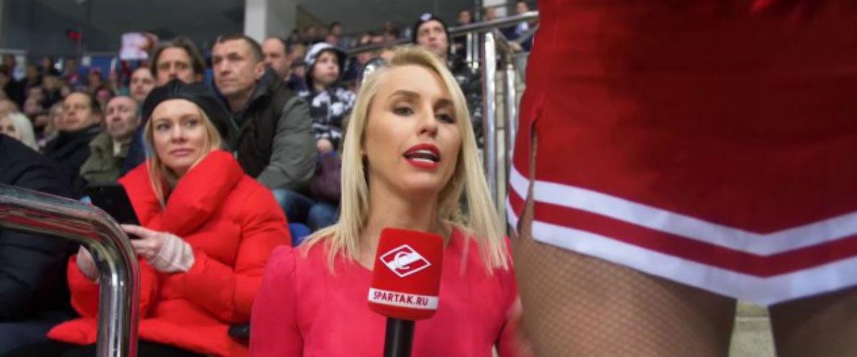 Η Ρωσίδα καλλονή δουλεύει στο κανάλι της ρωσικής ομάδας και πριν ή μετά από αγώνες βρίσκεται στην κερκίδα και μιλάει με οπαδούς της Σπαρτάκ.