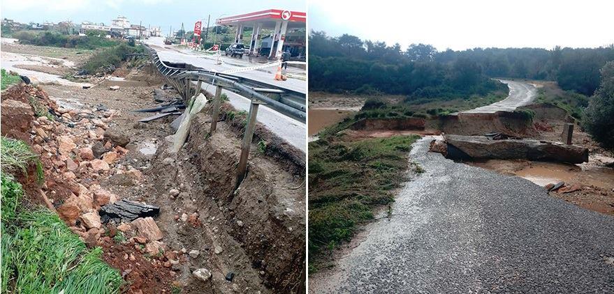 Στα δύο κόπηκε ο δρόμος στη Λυθράγκωμη, ενώ λόγω κατολίσθησης ο δρόμος, που ενώνει τον Βαθύλακα με τα άλλα χωριά της περιοχής κατέστη απροσπέλαστος.