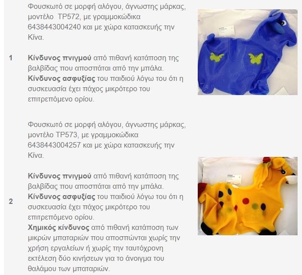 Εντοπίστηκαν επικίνδυνα παιγνίδια και άλλα προϊόντα στην αγορά(pics)