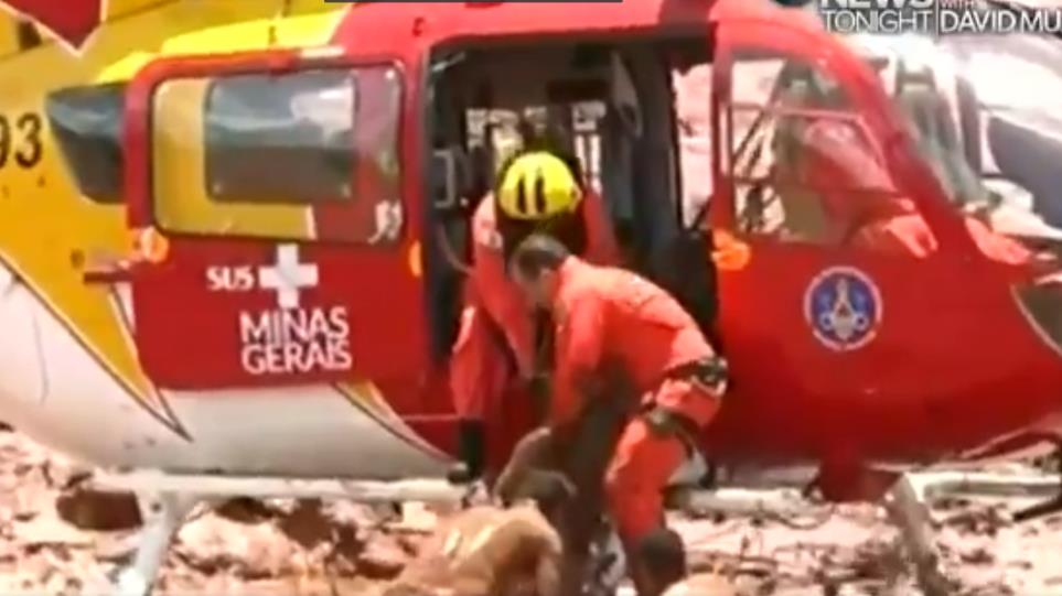 Με ελικόπτερα οι δυνάμεις της Πυροσβεστικής της Βραζιλίας προσπαθούν να διασώσουν ανθρώπους που έχουν παγιδευτεί στη λυματολάσπη του φράγματος ορυχείου που κατέρρευσε στη Βραζιλία.