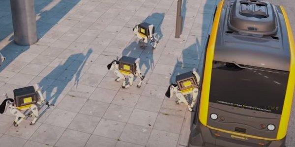 Όπως θα δείτε στο βίντεο που ακολουθεί, τετράποδα «σκυλάκια»-ρομπότ πηδούν από ένα βανάκι ντελίβερι χωρίς οδηγό, μεταφέροντας πακέτα στην πόρτα του παραλήπτη. Η ιδέα είναι συνδυασμός του CubE, του απολύτως αυτόνομου ρομπο-ταξί της Continental και των τετράποδων ρομπότ της ANYbotics που μπορούν να ανοίξουν πόρτα και να χρησιμοποιήσουν ασανσέρ.