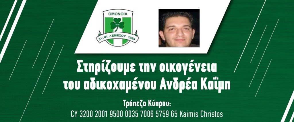 Χρέος να στηρίξει την οικογένεια του αδικοχαμένου Ανδρέα Καΐμη έχει η μεγάλη οικογένεια της ΟΜΟΝΟΙΑΣ!