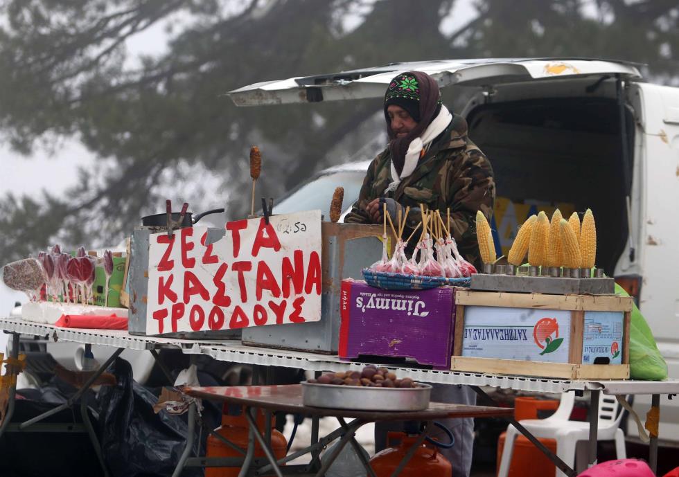 Όπως φαίνεται και στις εικόνες ο κόσμος που επισκέφθηκε το ορεινό θέρετρο ήταν και σήμερα αρκετός ενώ παρά το κρύο, έκαναν την εμφάνιση τους μικροπωλητές και καστανάδες.