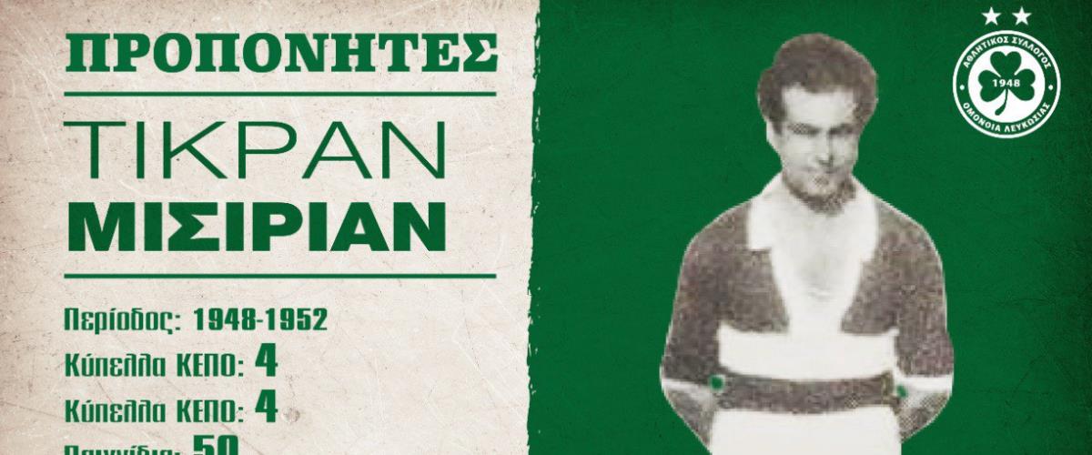Ο Τικράν Μισιριάν είναι μια από τις κορυφαίες μορφές στην ιστορία της Ομόνοιας και ένας από τους στυλοβάτες στα πρώτα δύσκολα χρόνια του Σωματείου».