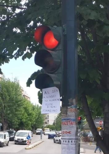 Ελλάδα 2019... Άφησαν σημείωμα σε φανάρι που δεν δουλεύει το πράσινο (pic)