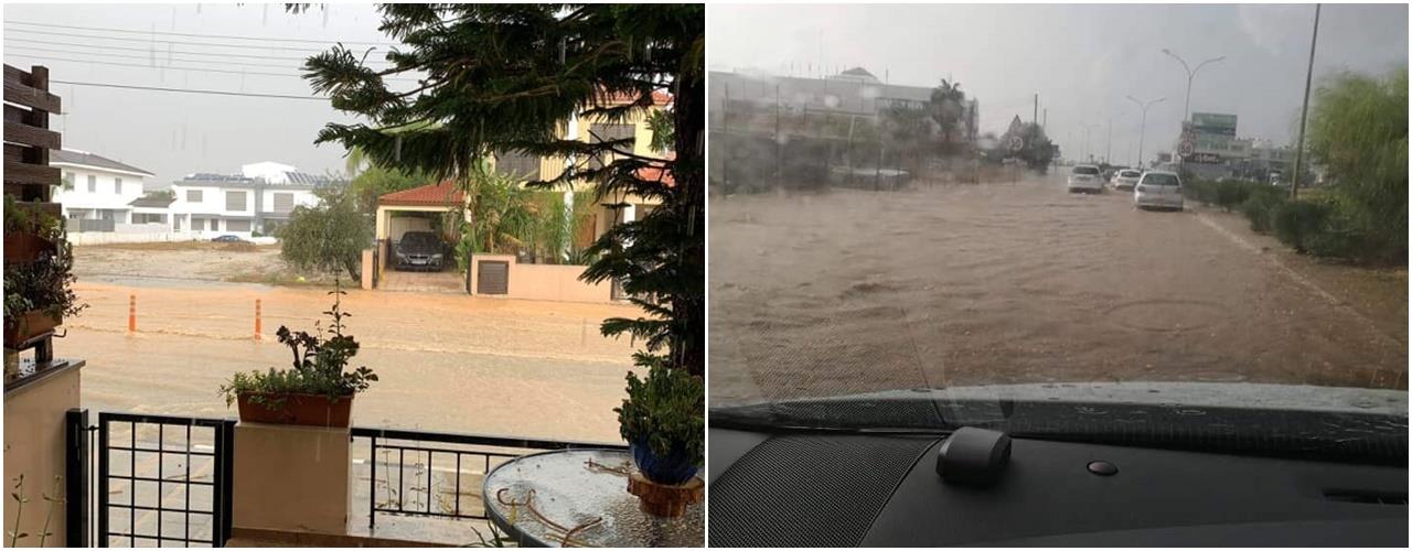 Σε ποτάμια μετατράπηκαν οι δρόμοι, σε διάφορες περιοχές της Κύπρου, λόγω των έντονων καιρικών φαινομένων που παρατηρήθηκαν νωρίς το απόγευμα.