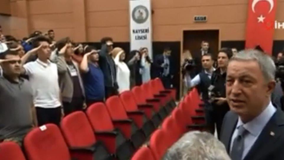 Με στρατιωτικό χαιρετισμό υποδέχθηκαν έφηβοι μαθητές τον Χουλουσί Ακάρ στο σχολείο τους κατά την πρόσφατη επίσκεψή του, με το σχετικό βίντεο να κάνει τον γύρο των τοπικών ΜΜΕ.