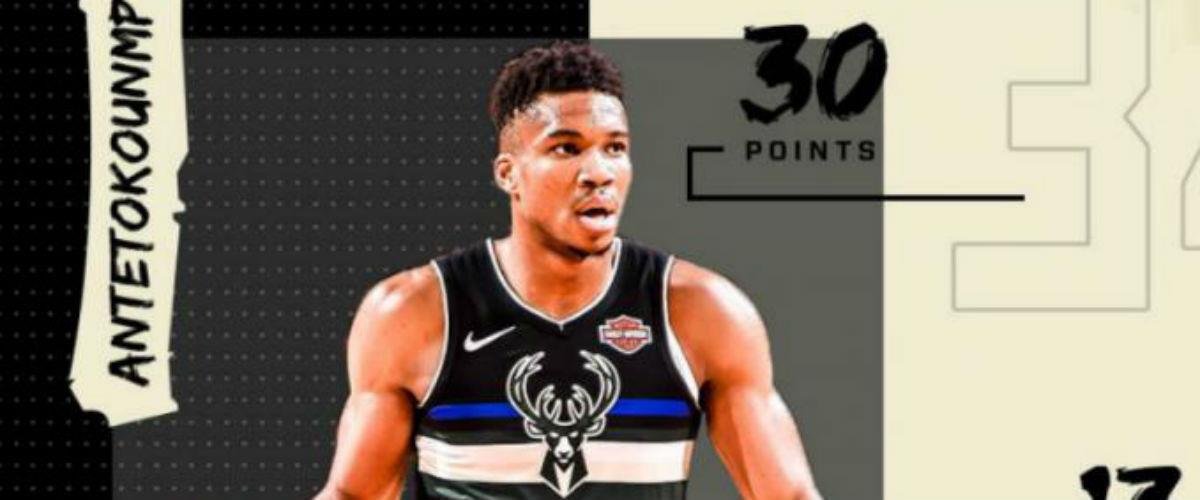 Συγκεκριμένα ο Έλληνας άσος του Μιλγουόκι γίνεται ο πρώτος που κάνει «trible double» σε αγώνα πρεμιέρας της ομάδας του έχοντας 30+ πόντους, μετά από το 1966 και τον μεγάλο Όσκαρ Ρόμπερτσον.