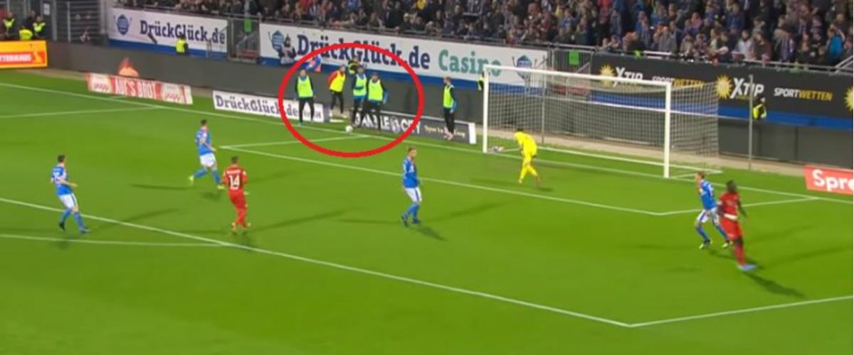 Ένα απίθανο πέναλτι κέρδισε... μέσω VAR η Μπόχουμ στο παιχνίδι με την Χοστάιν στη δεύτερη κατηγορία της Γερμανίας, όταν αναπληρωματικός που έκανε ζέσταμα στη γραμμή του άουτ έσπρωξε ξανά προς το γήπεδο τη μπάλα από κακό σουτ αντιπάλου, πριν αυτή περάσει τη γραμμή του άουτ!