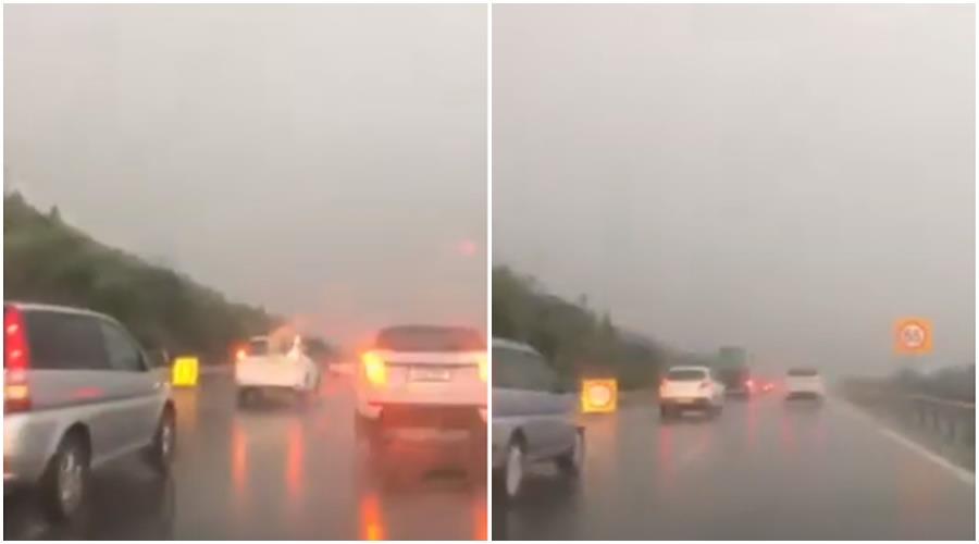 Οι καταρρακτώδεις βροχές, σε συνδυασμό με τα οδικά έργα που διεξάγονται στη μία λωρίδα κυκλοφορίας, στον αυτοκινητόδρομο έχει συσσωρευτεί νερό, με αποτέλεσμα ο δρόμος να καταστεί ιδιαίτερα επικίνδυνος για τους οδηγούς.