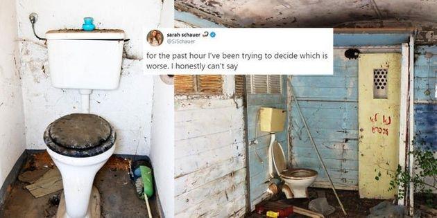 Η Σάρα Σάερ μοιράστηκε στο διάσημο μέσο κοινωνικής δικτύωσης τις φωτογραφίες από τις δύο τουαλέτες τις οποίες μπορείτε να δείτε κι εσείς. Στη συνέχεια έγραψε: «Την τελευταία ώρα τις κοιτώ και προσπαθώ να αποφασίσω ποια είναι χειρότερη. Ειλικρινά δεν μπορώ να καταλήξω».