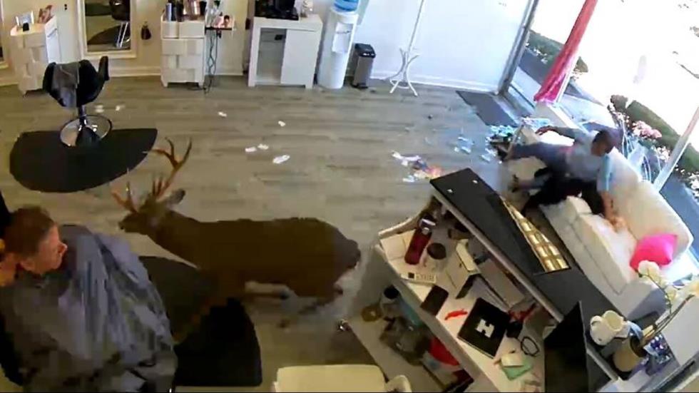 Ένα Σάββατο χαλάρωσης στο κομμωτήριο μετατράπηκε σε μεγάλη περιπέτεια για πελάτες στη Νέα Υόρκη, όταν ένα ελάφι έσπασε τη τζαμαρία και εισέβαλε στον χώρο!