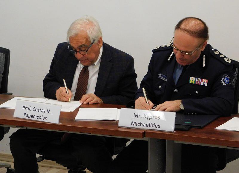Το Μνημόνιο υπογράφηκε το πρωί, στο Ινστιτούτο Κύπρου, από τον Αρχηγό Αστυνομίας κ. Κύπρο Μιχαηλίδη, τη διευθύντρια του Τμήματος Αρχαιοτήτων, Δρ. Μαρίνα Σολομίδου Ιερωνυμίδου και τον πρόεδρο του Κυπριακού Ινστιτούτου καθηγητή κ. Κώστα Παπανικόλα. Παρούσα στην σεμνή τελετή υπογραφής, ήταν και η Υπουργός Μεταφορών, Επικοινωνιών και Έργων κ. Βασιλική Αναστασιάδου.