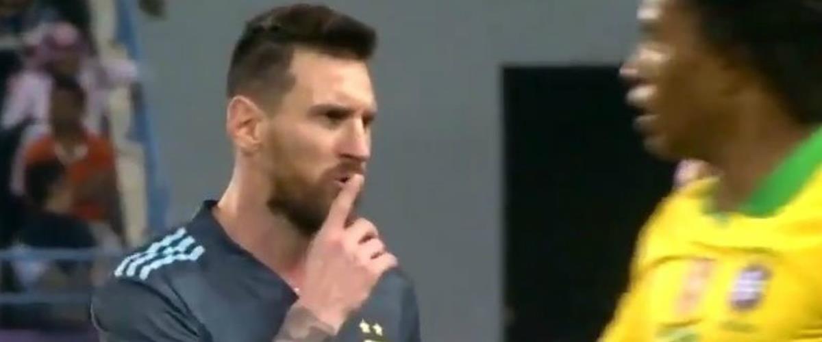 Κάποια στιγμή μέσα στο ματς ο τεχνικός της Εθνικής Βραζιλίας διαμαρτυρήθηκε για κίτρινη κάρτα που δεν δόθηκε στον Μέσι και τότε ο Αργεντινός σούπερ σταρ του έκανε νόημα να σωπάσει με τη χαρακτηριστική κίνηση, λέγοντας του και «σκάσε» απευθυνόμενος στον Τίτε.