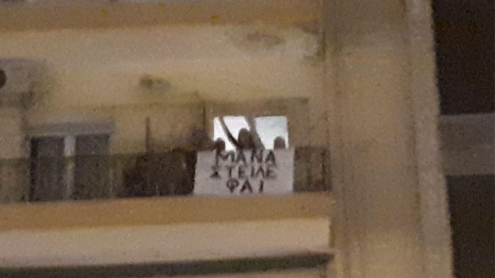 Φοιτήτριες που μένουν σε διαμέρισμα επί της οδού Εγνατία, κοντά στην ΕΥΑΘ, σήκωσαν πανό που έγραφε «Μάνα στείλε φαΐ».