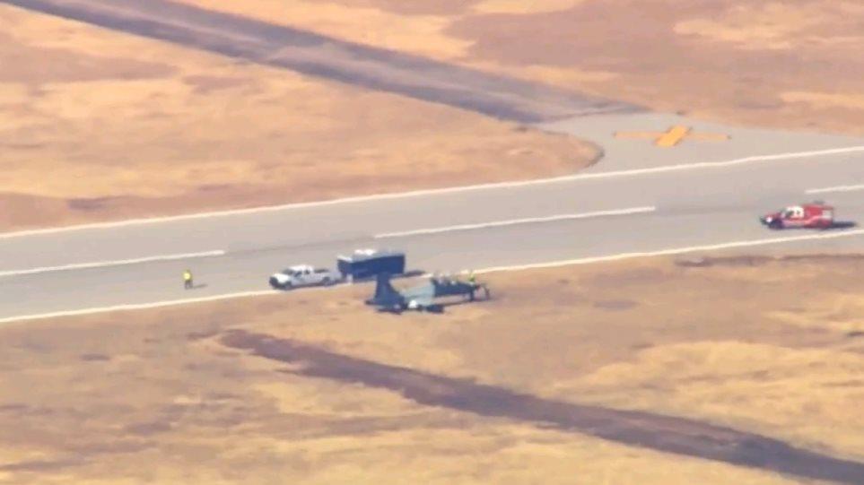 Οι εικόνες που κυκλφόρησαν, δείχνουν ένα αεροσκάφος να έχει αναποδογυρίσει έξω από τον διάδρομο της βάσης, ενώ ένα δεύτερο στέκεται όρθιο, λίγα μέτρα πιο κάτω.