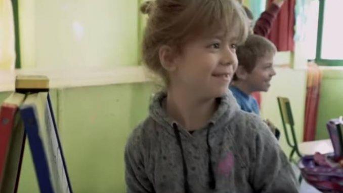 H μικρή Ευαγγελία, η οποία επικοινωνεί στη νοηματική γλώσσα, μπορεί και συνυπάρχει στο σχολείο της με τους ακούοντες συμμαθητές της.