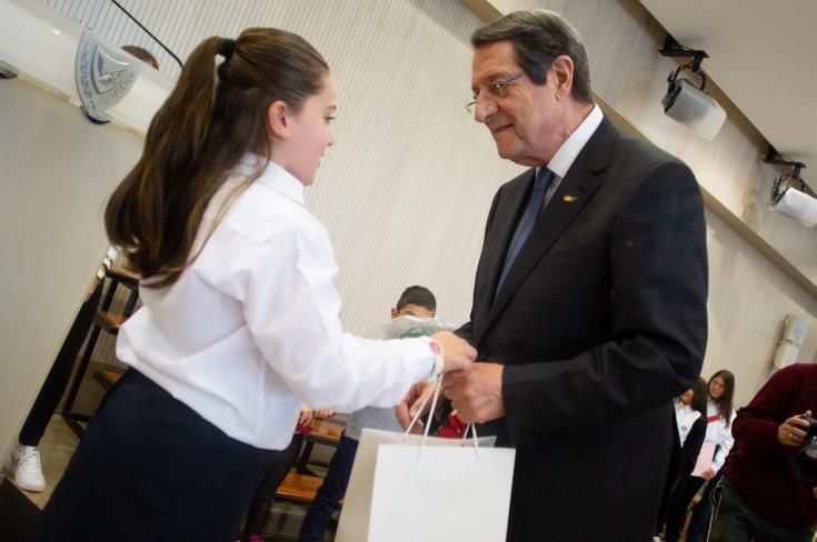 «Εσάς των παιδιών, για τα οποία έχουμε θέσει ως προτεραιότητα να φροντίσουμε έτσι ώστε οι προοπτικές προόδου και ευημερίας να είναι όσο το δυνατόν πιο ευοίωνες. Στόχος μας είναι να προασπίσουμε, να διασφαλίσουμε και να προάγουμε συνεχώς τα δικαιώματα όλων ανεξαιρέτως των παιδιών της πατρίδας μας. Στόχος μας την ίδια ώρα, επενδύοντας σε εσάς, είναι να σας παρέχουμε τα εφόδια, τα εχέγγυα, αλλά και τις ευκαιρίες εκείνες που θα σας επιτρέψουν να αναπτύξετε στο μέγιστο βαθμό τις γνώσεις, τις δεξιότητες και τις ικανότητές σας», είπε ο Πρόεδρος της Δημοκρατίας.