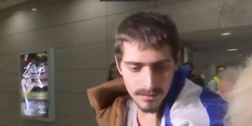 Το αεροπλάνο προσγειώθηκε στο αεροδρόμιο Ελ. Βενιζέλος λίγο μετά τις 20:30 το βράδυ. Εκεί τον περίμεναν συγκινημένοι οι γονείς του, οι οποίοι βούρκωσαν όταν τον είδαν να κατεβαίνει, τυλιγμένος με την ελληνική σημαία.