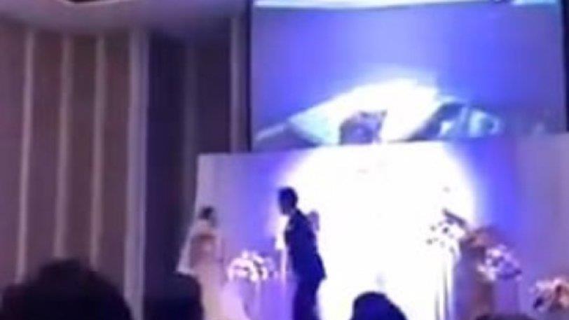 Στα videos που έχουν κυκλοφορήσει στα ασιατικά social media, φαίνεται ένα ζευγάρι νεόνυμφων να μπαίνει σε μία αίθουσα εκδηλώσεων και να γίνεται δεκτό με χειροκροτήματα από συγγενείς και φίλους.