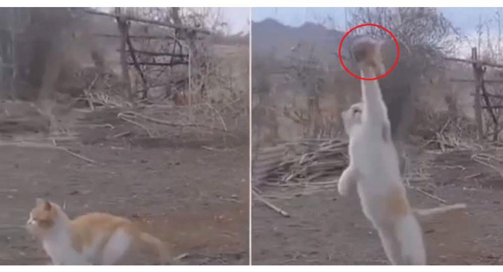 Γάτα-νίντζα απογειώνεται και πιάνει πουλί στον αέρα (video)