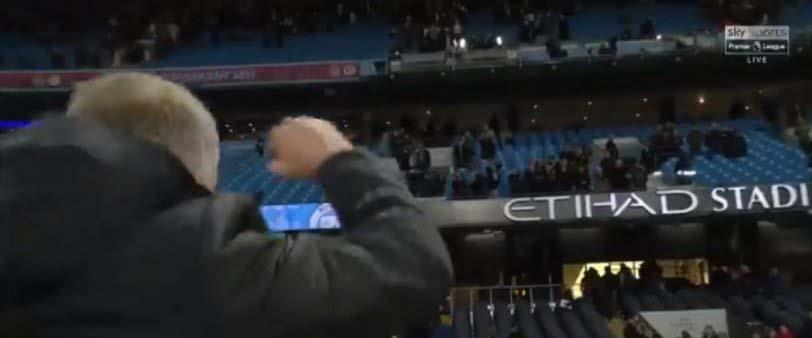 Πανευτυχής ήταν ο Σερ Άλεξ Φέργκιουσον στα επίσημα του Etihad μετά το 2-1 της Γιουνάιτεντ επί της Σίτι στο ντέρμπι του Μάντσεστερ και ο Σόλσκιερ έδειξε να του... αφιερώνει τη μεγάλη νίκη!