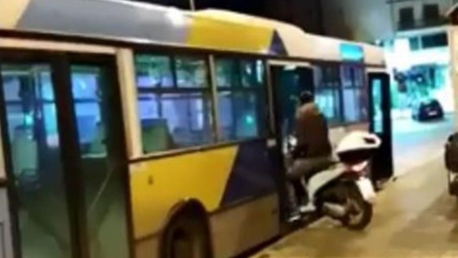 Τίποτα το φοβερό, απλά μπήκε στο λεωφορείο του ΟΑΣΑ με το μηχανάκι του.