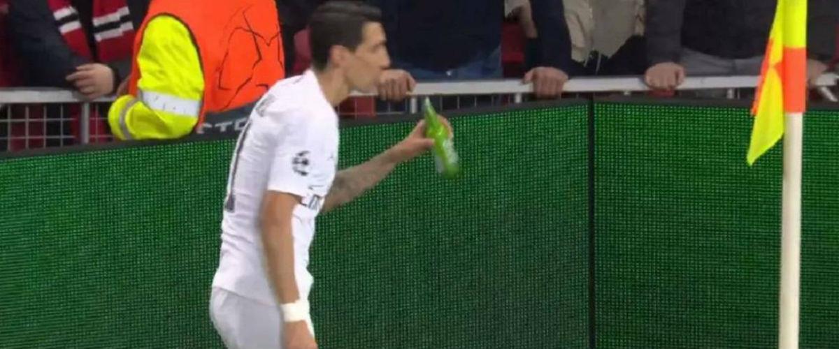 Οι οπαδοί των "κόκκινων διαβόλων" πέταξαν προς το μέρος του μπουκάλια. Ένα από αυτά που πιθανότατα περιείχε μπίρα προσγειώθηκε πολύ κοντά στον Ντι Μαρία.