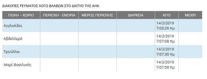 Όσον αφορά τη Λάρνακα, χωρίς ρεύμα παραμένουν οι Αγγλισίδες, το Αβδελλερό, οι Τρούλλοι και το Μαρί.