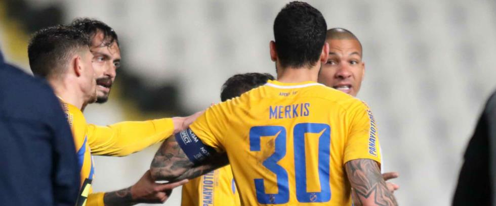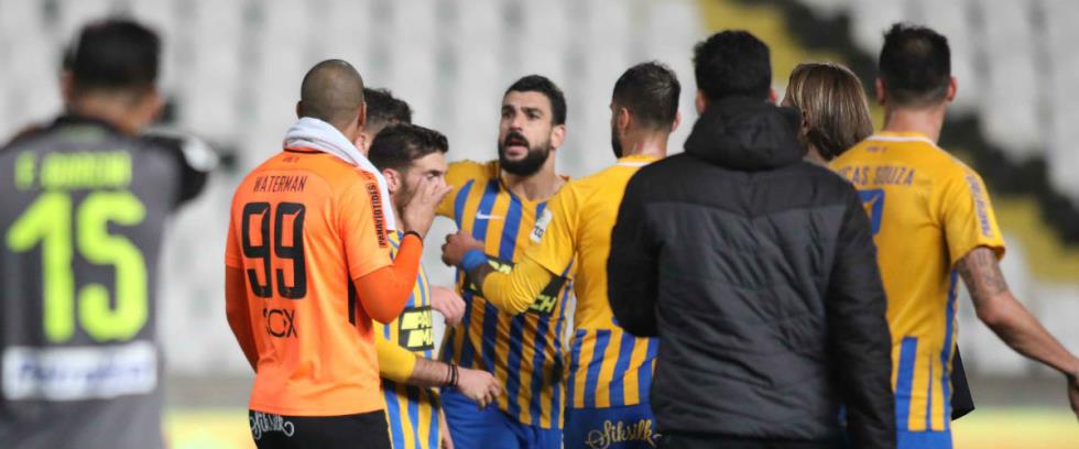 Ο αμυντικός του ΑΠΟΕΛ και ο τερματοφύλακας των γαλαζοκιτρίνων ύψωσαν τους τόνους της φωνής τους κατά την αποχώρηση από τον αγωνιστικό χώρο.