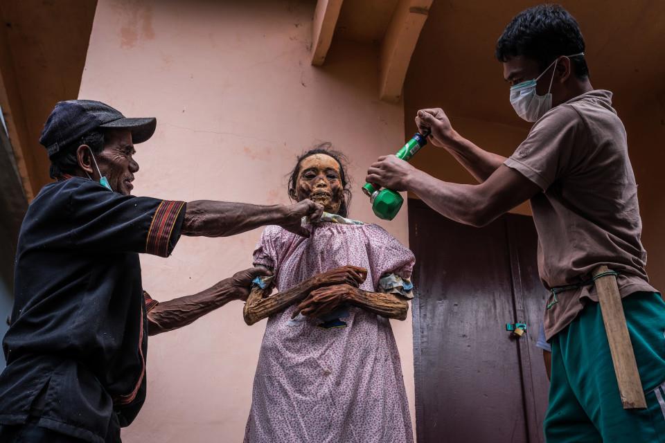 Οι συγγενείς ντύνουν τον νεκρό καθημερινά και όταν το πτώμα π»παλιώσει» και αρχίζουν να πέφτουν τα δόντια του, το πηγαίνουν σε οδοντίατρο της περιοχής ο οποίος του βάζει μασέλα.