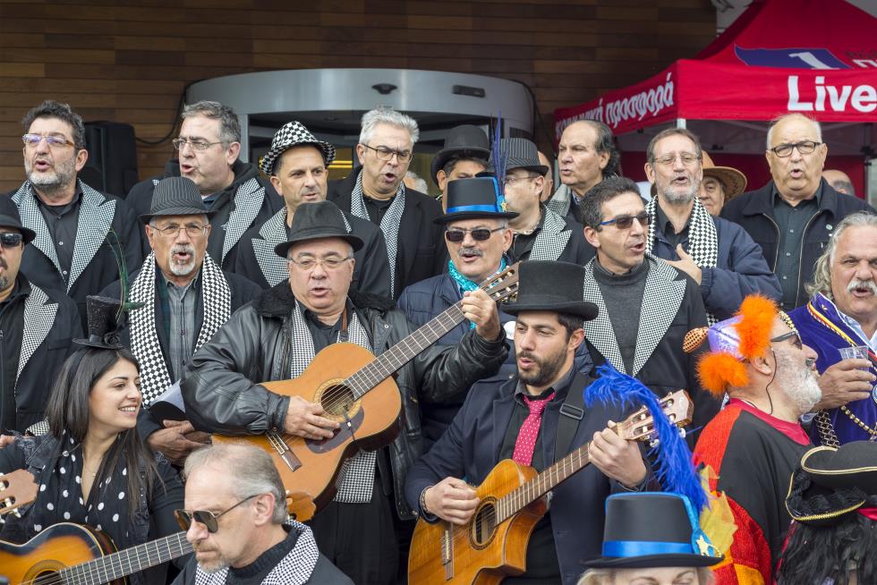 Από το μεσημέρι το κέφι μεταφέρθηκε στην πλατεία Σαριπόλου, όπου η ομάδα "Κανταδόροι Λεμεσού" τραγουδούν για όλο τον κόσμο, παρέα με το Δήμαρχο, μέλη του δημοτικού συμβουλίου και τη Βασιλική Οικογένεια του Καρναβαλιού.