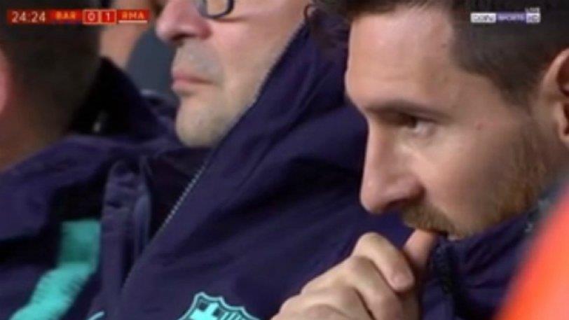 Η Μπαρτσελόνα έκανε πολύ κακή εμφάνιση στο πρώτο ημίχρονο στο Clasico, όταν και βρέθηκε να χάνει με 1-0 από την Ρεάλ. Ο σημαντικότερος λόγος για αυτό ήταν φυσικά η απουσία του Μέσι, που έμεινε στον πάγκο μετά τον τραυματισμό του στο ματς με την Βαλένθια. Ο κόσμος κάποια στιγμή άρχισε να φωνάζει ρυθμικά το όνομά του και το βλέμμα του στον πάγκο τα λέει όλα για την εικόνα των συμπαικτών του...
