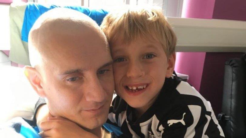Συνεχίζοντας ο μικρός αναφέρει: «Στην φωτογραφία είμαι εγώ με τον μπαμπά μου, όταν έχασε τα μαλλιά του. Άρεσε και σε εμένα και στον αδελφό μου που ήταν καραφλός, γιατί μοιάζει Τζόντζο Σέλβεϊ της Νιούκαστλ που είναι η αγαπημένη μας ομάδα. Σας παρακαλώ βοηθήστε τον πατέρα μου και γραφτείτε στην λίστα για να γίνεται δωρητές. Τον αγαπάω και δεν θέλω να τον χάσω».