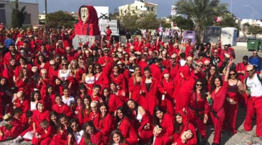 Στη Λεμεσό μπορεί να έβαλαν βέτο για την εμφάνιση άρματος με θέμα την παγκόσμιας φήμης σειρά La Casa de Papel, που κατέκτησε τις καρδιές μικρών και μεγάλων, όμως δεν συνέβη το ίδιο και στο Παραλίμνι.