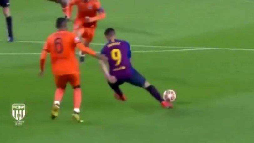 Ο Λουίς Σουάρες έκανε φοβερό πρώτο μέρος κόντρα στη Λυών. Πήρε το πέναλτι για το 1-0 και σέρβιρε έτοιμο το 2-0. Γενικότερα όμως είχε μεγάλα κέφια, όπως φάνηκε και στην απίθανη προσποίηση που έσκασε στον Μαρσέλο, κάνοντάς του ουσιαστικά ποδιά, δίχως όμως να ακουμπήσει καν την μπάλα.