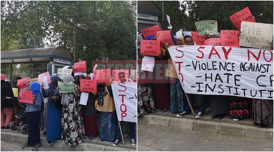 Ειρηνική εκδήλωση διαμαρτυρίας πραγματοποιούν γυναίκες και άνδρες από τη Σομαλία, έξω από τη Βουλή,με αφορμή το περιστατικό βίας κατά γυναίκας από τη Σομαλία σε γραφείο κοινωνικής ευημερίας, που είχε προκαλέσει σάλο την περασμένη εβδομάδα και είχε κάνει το γύρο του διαδικτύου.