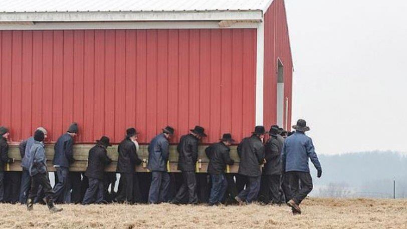 Έτσι, όταν προέκυψε η ανάγκη να μεταφερθεί μία σιταποθήκη, η κοινότητα που ζει σε μία περιοχή του Οχάιο, αποφάσισε να το κάνει με έναν απίθανο τρόπο.