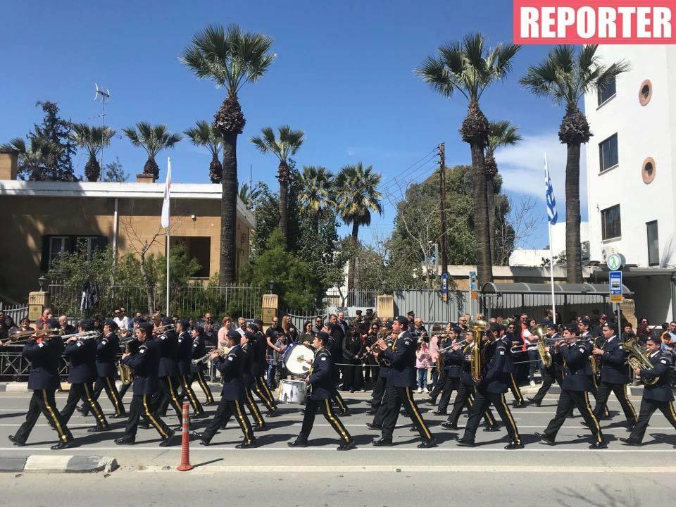 Με λαμπρότητα τίμησε η Λευκωσία την επέτειο της 25ης Μαρτίου. Μαθητές, φοιτητές, σωματεία και οργανώσεις παρέλασαν, όπως κάθε χρόνο, έξω από την Ελληνική Πρεσβεία.