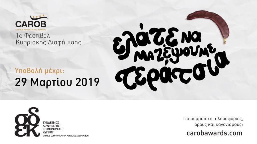 Ο Σύνδεσμος Διαφήμισης–Επικοινωνίας Κύπρου (ΣΔΕΚ) διοργανώνει για πρώτη φορά τα CAROB Awards, τα οποία έχουν στόχο να αναδείξουν τη δημιουργικότητα στη διαφήμιση και να επιβραβεύσουν το ταλέντο και τη σκληρή δουλειά των στελεχών που εργάζονται στο χώρο της διαφήμισης στην Κύπρο.