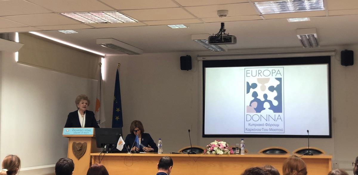 Η κ. Κυριακίδου, μεταφέροντας το χαιρετισμό της Προέδρου της EUROPA DONNA Κύπρου Εύης Παπαδοπούλου, ανέφερε ακόμη ότι η πρόθεση του Συνδέσμου να επεκταθεί και σε νέες μορφές καρκίνου, έρχεται ως συνέχεια των σχετικών αποφάσεων, που έλαβε πρόσφατα και η Ομοσπονδία της EUROPA DONNA Ευρώπης, σχετικά με τη συμπερίληψη και άλλων μορφών γυναικολογικού καρκίνου στα προγράμματα και τις υπηρεσίες της.