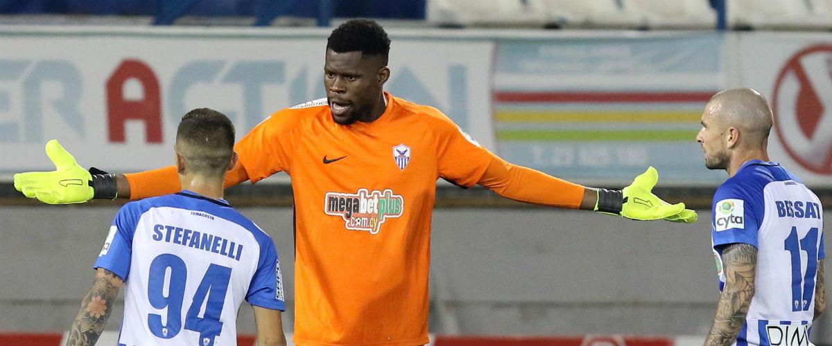 Ο πορτιέρε της ομάδας της Αμμοχώστου αποχώρησε χτυπώντας τις ταμπέλες διαμαρτυρόμενος για την απόφαση του διαιτητή.