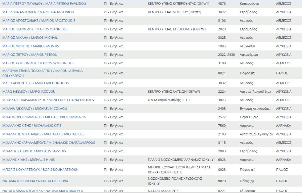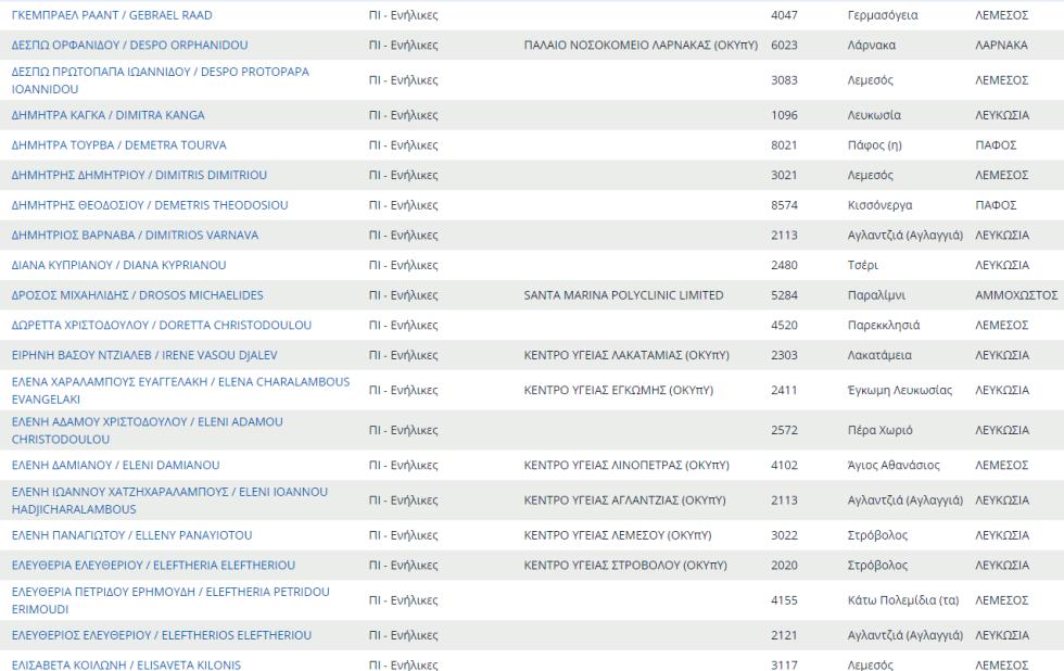 Δείτε εδώ ολόκληρο τον κατάλογο με τους προσωπικούς γιατρούς του ΓΕΣΥ