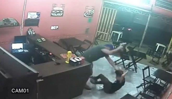 Ένα σοκαριστικό βίντεο το οποίο δείχνει την άγρια επίθεση ενός αστυνομικού στη Βραζιλία σε βάρος μιας ιδιοκτήτριας καφετέριας, με αφορμή το γεγονός ότι η γυναίκα έβαλε λάθος σως στο μπέργκερ που είχε παραγγείλει, ήρθε στο φως της δημοσιότητας.