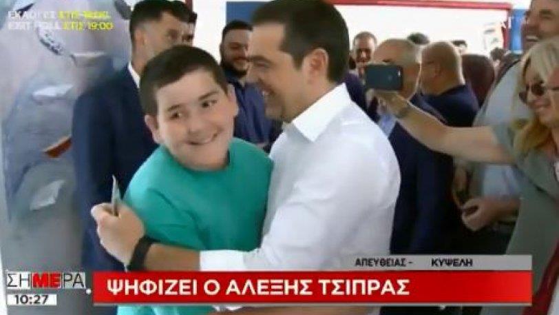Έναν απολαυστικό διάλογο με έναν πιτσιρικά, είχε ο Αλέξης Τσίπρας περιμένοντας να έξω από το εκλογικό τμήμα που ήταν εγγεγραμμένος.