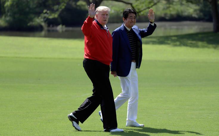 Στη διάρκεια του Σαββατοκύριακου, ο Αμερικανός πρόεδρος έπαιξε γκολφ με τον Ιάπωνα πρωθυπουργό Σίνζο Άμπε και παρακολούθησαν μαζί τουρνουά γκολφ.