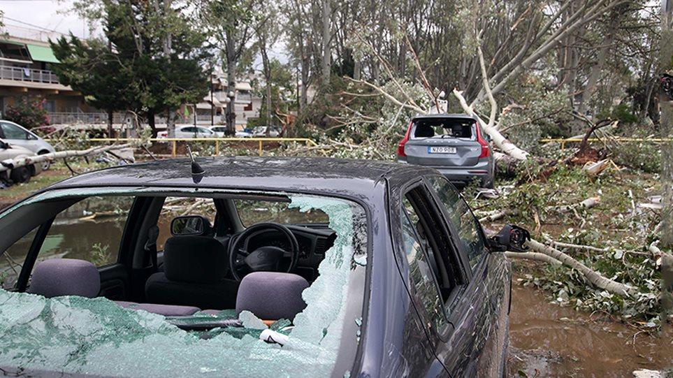 Ξεριζωμένα δέντρα, αναποδογυρισμένα αυτοκίνητα, ανυπολόγιστες υλικές ζημιές, δρόμοι που μετατράπηκαν σε χειμάρρους συνθέτουν την εικόνα της καταστροφής.